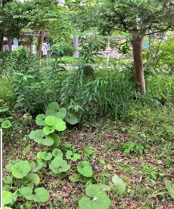 この写真の通り、雑草で鬱蒼としていた箇所を展示している植物を残しつつ除草を行いました。作業後はさっぱりとしていて植物が明確になりましたね。